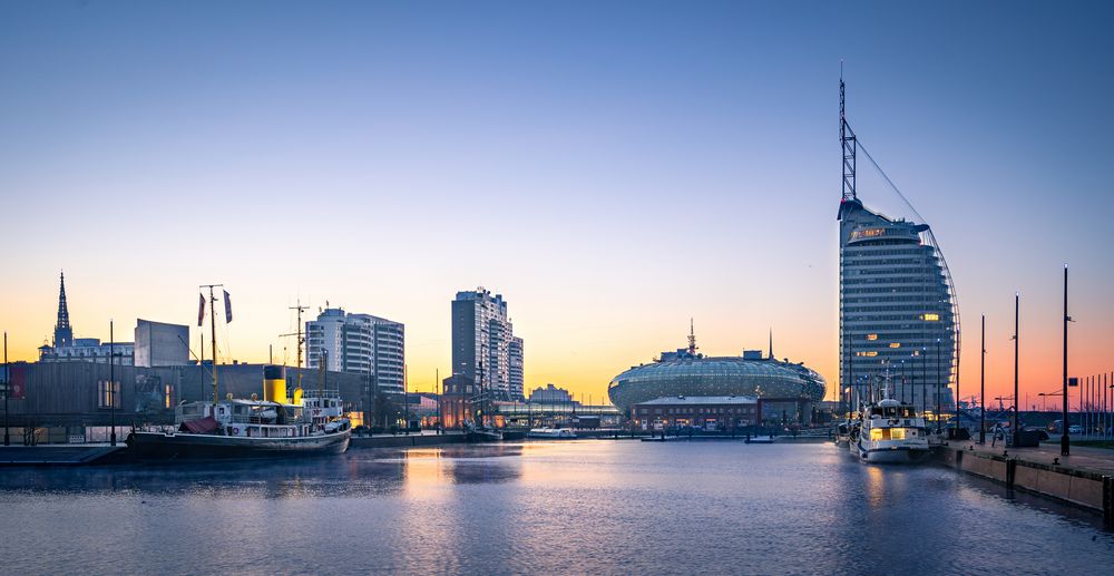Bremerhaven ist eine Stadt im Bundesland Bremen, Deutschland, und liegt an der Mündung der Weser in die Nordsee. Die Stadt ist bekannt für ihren bedeutenden Hafen, der einer der größten Containerhäfen Deutschlands ist und eine wichtige Rolle im internationalen Handel spielt. Bremerhaven ist berühmt für seine maritime Geschichte und Kultur, die sich in zahlreichen Museen und Veranstaltungen widerspiegelt. Die Stadt wurde im Jahr 1827 gegründet und entwickelte sich schnell zu einem wichtigen Handels- und Verkehrszentrum. Bremerhaven hat auch eine bedeutende Rolle in der Auswanderungsgeschichte Deutschlands gespielt, da viele Menschen von hier aus in die Neue Welt aufbrachen.